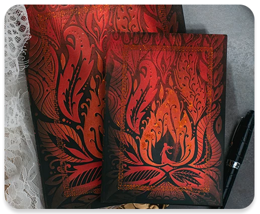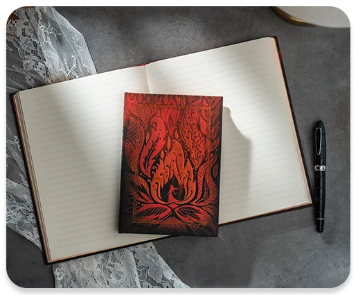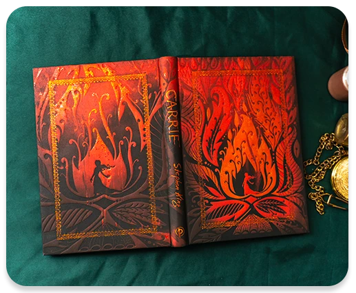 This collaboration with Hodder & Stoughton was warmly embraced by all involved, especially as we are both from the Hachette UK family! We were inspired by their cover design and knew right away that bringing it to life with Hodder & Stoughton in the Paperblanks world was a perfect match. With the design drawing from the highly symbolic moments from the story, like dripping blood and blazing fire, this special Carrie cover is not only striking but captures the essence of the story’s eerie atmosphere.